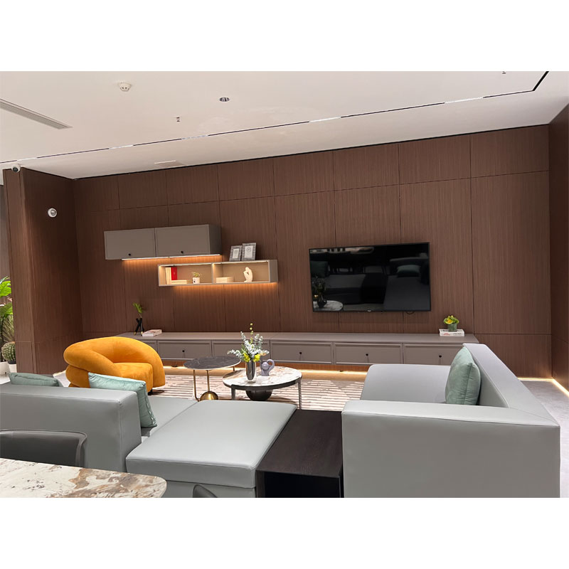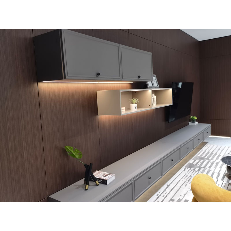 Ми рекомендуємо найкращий тип для вас. Біла тумба в поєднанні з сірою стінкою під телевізор – найпопулярніша комбінація. Крім того, ПВХ-матеріал має хороший ефект звукопоглинання, може ефективно усунути переслідування комах, щоб продовжити термін служби. Крім того, SINOAH може пофарбувати поверхню шафи та додати розсувні двері індивідуальної форми.