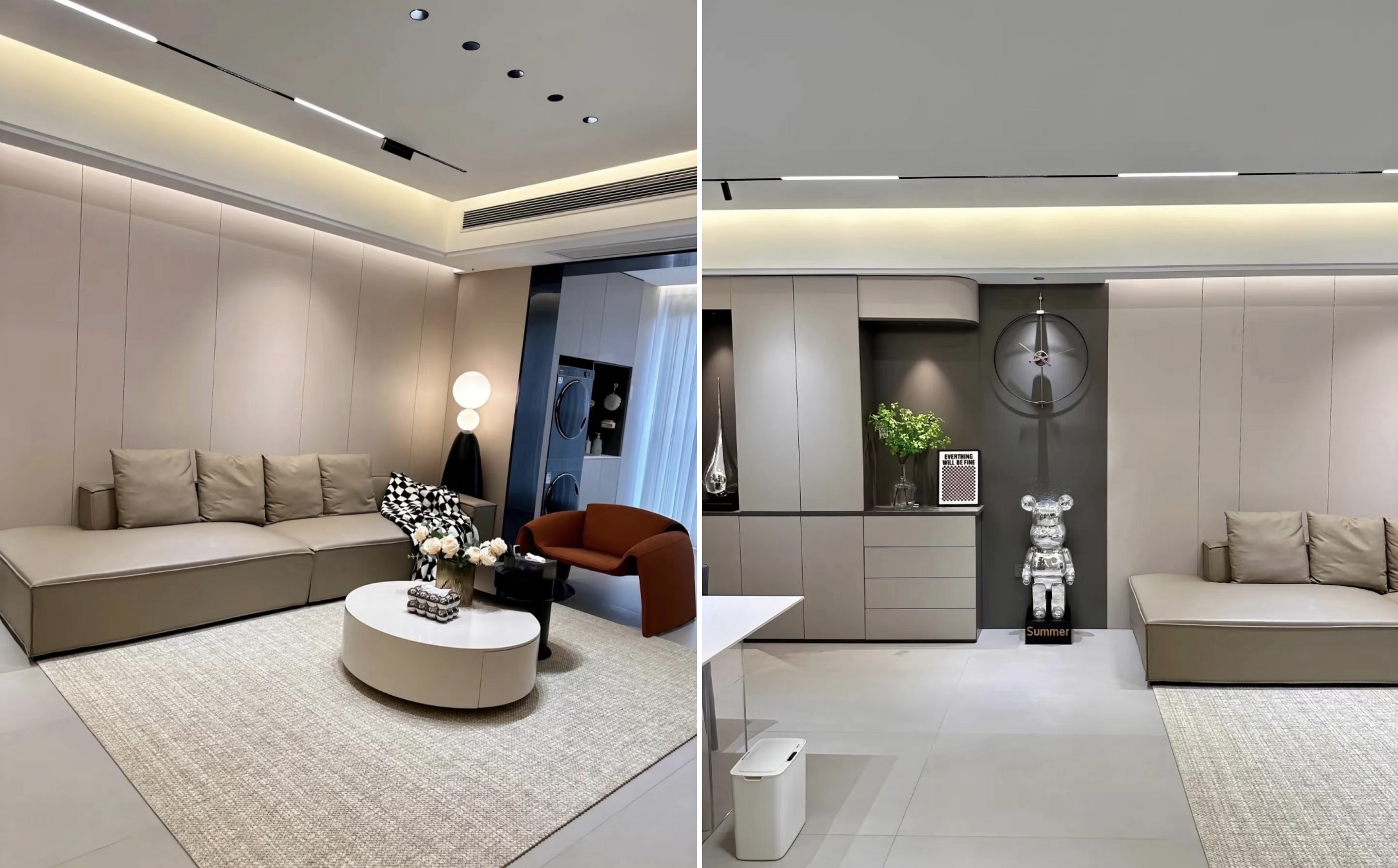 4. Крім шаф, інші стіни використовують настінні панелі в тому ж кольорі, що і двері шафи для більш узгодженого загального ефекту.